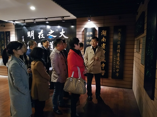 接着,刘林祥校长陪同客人们来到校史陈列馆参观,品味明德百年文化史,感悟明德历史文化积淀。刘校长带领他们纵览明德百年办学文化,从校名、校歌、校旗、?;盏浇裎裘颂獯?,详细介绍了明德创办之初的筚路蓝缕及一路跋涉的历史沿革、理念文化??腿嗣窍晗噶私饬宋倚S凭蒙詈竦睦肺幕?,他们对我校传承“坚苦真诚,磨血育人”的优良传统,不断丰富“文化立校,明德树人”的办学内涵赞叹不已。