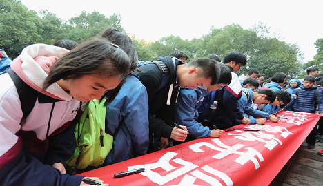 11月18日是我国传统祭祀节日----寒衣节,高二全体师生在岳阳楼前进行了一场盛大、庄重的祭拜活动。学生代表K404班曾佳豪号召大家传承先贤们忧国忧民、胸怀天下的精神,齐诵千古雄文《岳阳楼记》,祭拜先贤故人,并在横幅上签名以示承诺。通过这次活动,学生们对范仲淹等先贤和岳阳楼所蕴含的文化内涵有了更深刻的认识,学校教育处杨智勇主任表示,我们开展这一活动的目的不只是体现一种仪式感,更为重要的是延伸课堂教学内容,让他们去直观感悟,增强孩子们对先贤的崇敬之情,同时主动传承“敢为人先、心忧天下”家国情怀。
