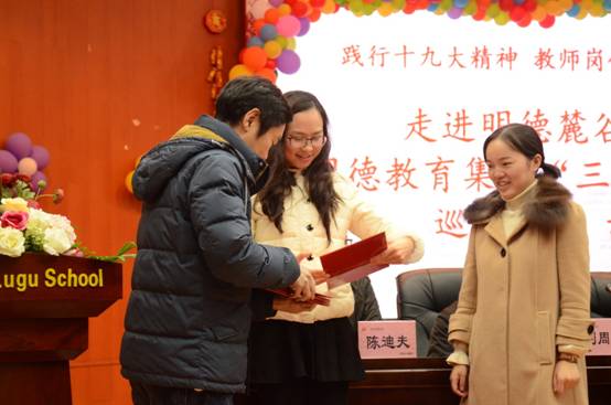 明德中学党委书记徐林为授课老师颁发证书