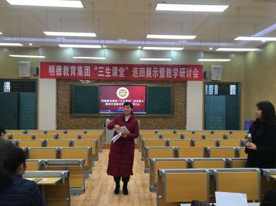 为什么说这张照片大有深意?我们先来听听明德中学党委徐林书记在此次会上的总结讲话:“明德教育集团‘三生课堂’巡回展示活动有六大亮点。第一,这是将集团在联考层面的交流上升到了教学调研层面的标志性事件;第二,聚焦核心素养的‘三生课堂’作为明德好课堂的理念发扬得好;第三,不走形式,注重实效,给听课的师生带来了实实在在的价值;第四,各校以之作为改进学校内部管理、提升学校品味的举措,譬如家里来了客人,先要打扫屋子,做几个好菜。第五,展示了一线教师的风采和各校的办学水平;第六,不只是上课听课,而且还有评课研讨,营造了良好的教学研究氛围。今后我们明德教育集团还要多开展此类活动,注重百花齐放、百家争鸣。”