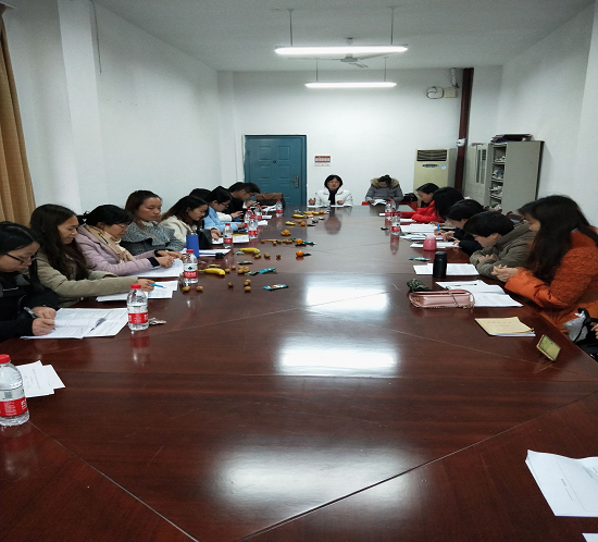 英语学科研讨会在乐诚堂E420举行,英语学科中心主任何灵芝老师(右)主持
