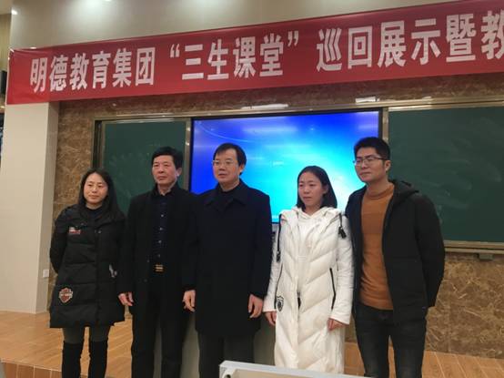 在最后的颁奖仪式上,明德教育集团总校长、明德中学校长刘林祥、明德中学党委书记徐林、明德中学副校长郭陆初、明德中学纪委书记周喜兰与崔瑞良、谢卫平、谭亚婷等三位展示课教师合影。