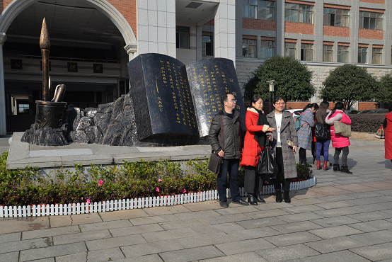 冷水江一中的同仁纷纷在明德校园合影留念