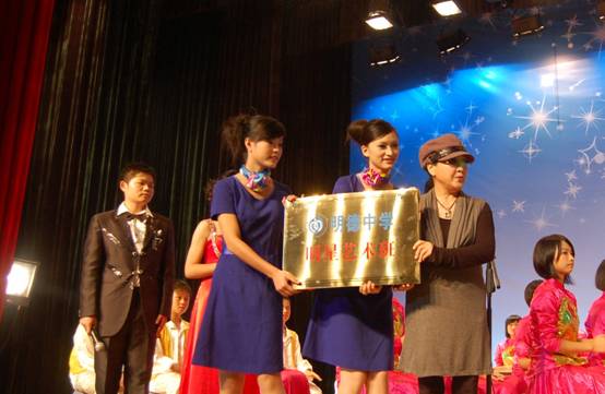 2009年10月22日,著名歌唱家李谷一(前右一)为明德中学颁发“明星艺术班“牌匾