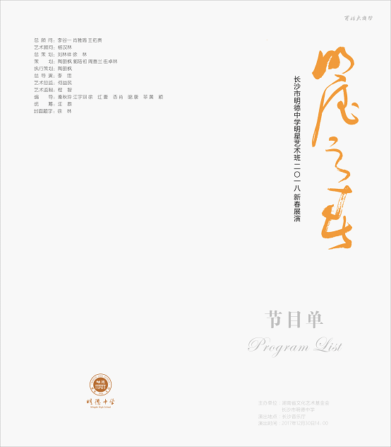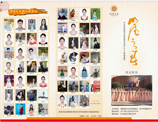 今逢2018新春即将到来之际,长沙市明德中学联合湖南省文化艺术基金会隆重推出: “百姓舞台·百姓家”——2018“明德之春”明德中学明星艺术班新春展演