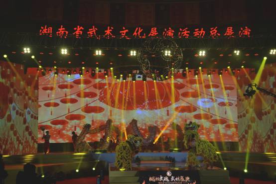 总展演在来自浏阳的龙狮表演《龙腾三湘》中拉开帷幕,龙腾虎跃,精彩纷呈,充分展现了湖南武术的传承和活力。最后一个节目《天下武林是一家》更是别出心裁,将现场氛围推向高潮,湖南省传统武术门派掌门人都带着传承人,高举旗帜,登台亮相,充分展现湖南武术人风采。