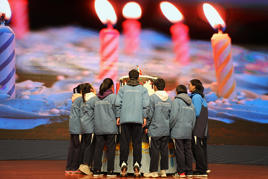 古典礼仪的内涵,应该与现代社会的潮流相结合。所以,在笈礼和冠礼结束之后,明德中学全体校领导和学生代表,合力推着一个“大蛋糕”走上舞台,为在场所有的学子点燃十八岁的生日蜡烛。