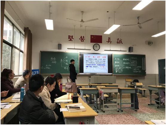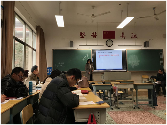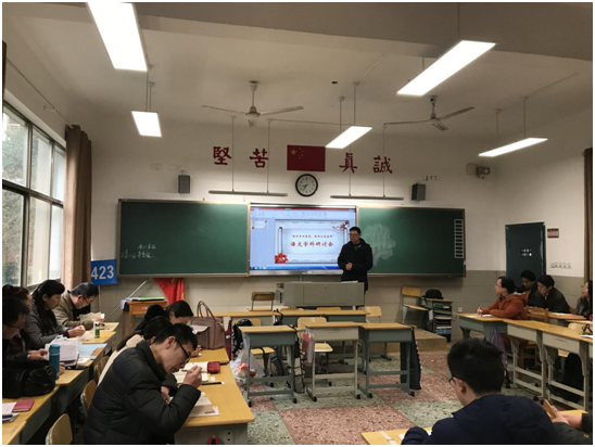 2018年3月2日,为促进我校语文教师专业发展、加强语文学科建设、提高教育教学品质,明德中学语文组全体教师汇聚乐诚堂106教室,探寻一条 “提升专业素养,做研究型的教师”的成功之路。我校党委书记徐林、教科室主任崔瑞良、办公室主任夏琴、办公室副主任马臻也亲临现场参与研讨。