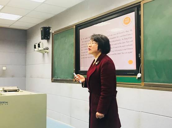 K386班刘红茹老师针对高分学生写作的困惑,从申请信切入,宏观的指导学生应该从哪些方面提升自己的作文。从Volunteers Wanted 的一篇学生已经练过的范文入手,讲评如何审题、布局、组句、连贯几个大的步骤。应用文文体审题方面要注意文章类型、时态、收信人身份、内容方面。审题完毕,通过展示不同学生的优秀范文段落,学生在朗读中共赏析。除了明晰的段落结构之外,好的作文还有自然流淌出的连接词。连接词是作者思路的线索,是起承转合的关键。好的作者善于自然地运用连接词引导阅读者领略文字以及思维的变幻之美。学生在掌握了基本的构文步骤之后,通过实际的作文改写训练,在互评互改中更好的提升了写作意识。