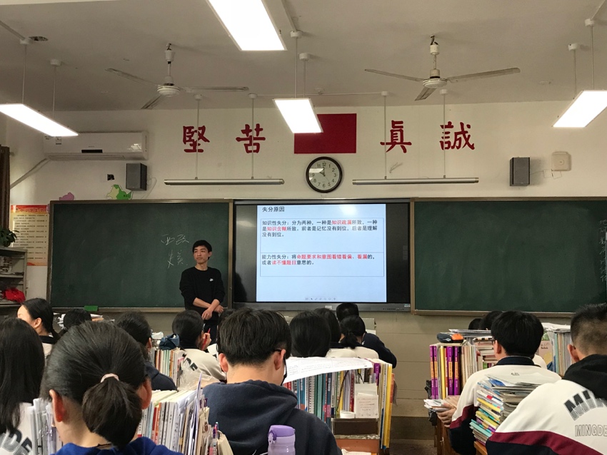 在邹伟光老师执教的黄兴班K380班,通过月考试卷讲评,让大家见识了精准教学和有的放矢的复习策略。邹老师在课前调查了全班同学的答题情况,将每道题涉及的考点、错误率等情况整理成表并展示,让同学们在自己查漏补缺时做到心里有数;并选取失分率高的典型题目进行集中讲解,逐个分析重点难点;还总结失分原因和答题技巧;还利用多媒体,展示本班同学优秀答卷和问题答卷,指出优点和不足。激励和警示双管齐下,学生沉浸在高效的复习课堂中,有了很大收获。