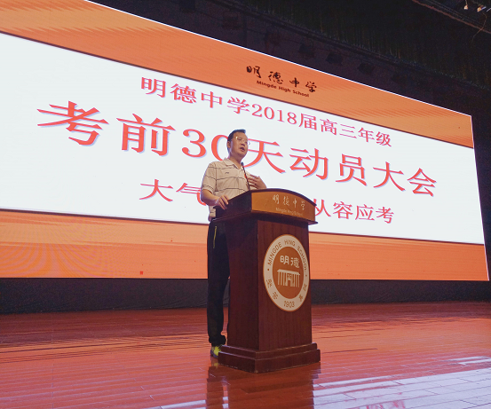 随着高考的逐步接近,每个高三师生心中都添上了一丝紧张。为了激励全体师生保持高考必胜的信心,顺利跑完高考马拉松的最后一公里。明德中学高三年级组于5月6日在怀求体育馆举行高考30天动员大会。