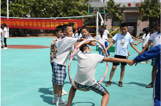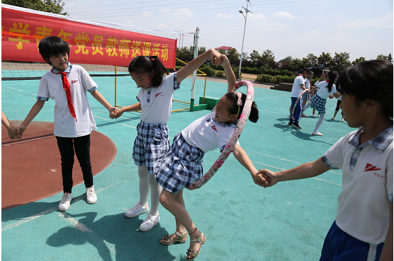 活动中,青年党员教师戴必昕为孩子们上了一堂别开生面的体育课,教学设计以简单有趣的活动为主,以学生为主体,充分调动了学生的积极性,提高了小组合作能力和集体荣誉感,倍受孩子们的喜爱。