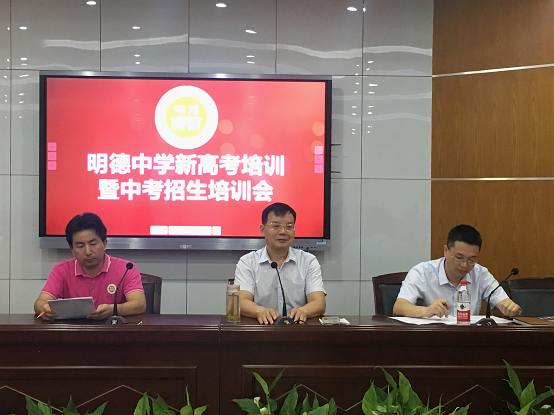 6月29日上午,明德中学新高考培训在黄兴图书馆一楼学术报告厅举行。此次培训由教科室崔瑞良主任主讲,2018届高三全体教师参加,学校刘林祥校长、教务处匡拥军主任出席。