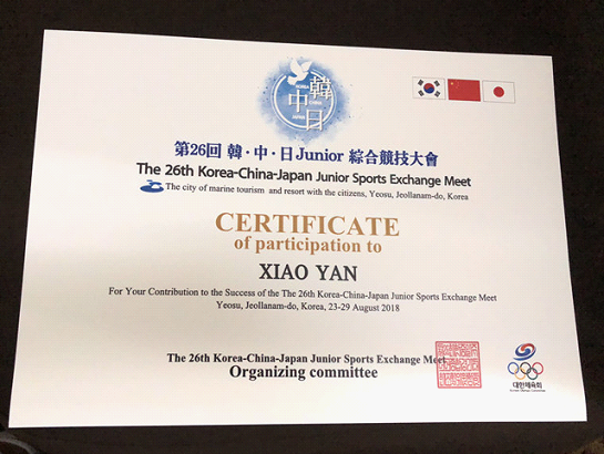 据教练介绍,肖燕同学一年来频繁参加各类大赛,成绩突飞猛进,是一匹潜力深厚的“小黑马”。本月她首先在福建泉州参加完全国传统校南方赛区田径比赛获得了一金一银,然后立刻前往北京和国家青年队集结,前往韩国参加了2018年中日韩挑战赛,在本次比赛当中25号400米预赛跑出了55.76的骄人成绩排名第二,在26号的决赛当中跑出了56.18夺得了女子400米第一名。
