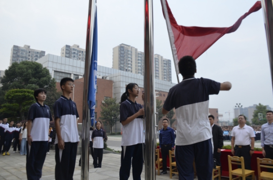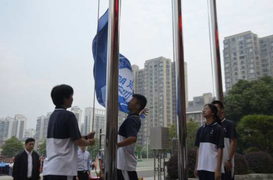 全体肃立,升长沙市明德中学校旗,奏唱长沙市明德中学校歌