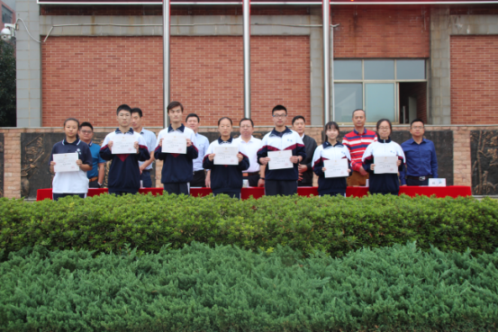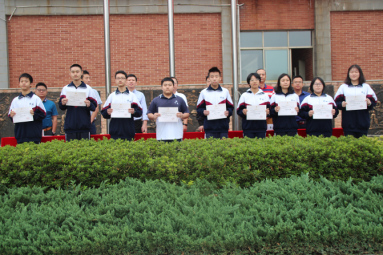 大会第一项,由来自K430班的吴汝伦同学为大家介绍本周五位优秀旗手,旗手介绍完毕后,是严肃而庄严的升旗仪式。当国歌、校歌声依次响起,同学们肃穆地注视着国旗,缓缓升起的国旗在晨光下熠熠生辉。升旗仪式后,由教育处蒋灿强主任宣读表彰决定随后由学校领导及中层干部为优秀班级及优秀志愿者颁奖。优秀志愿者们在学校领导们的手中接过奖状,脸上洋溢着笑容。