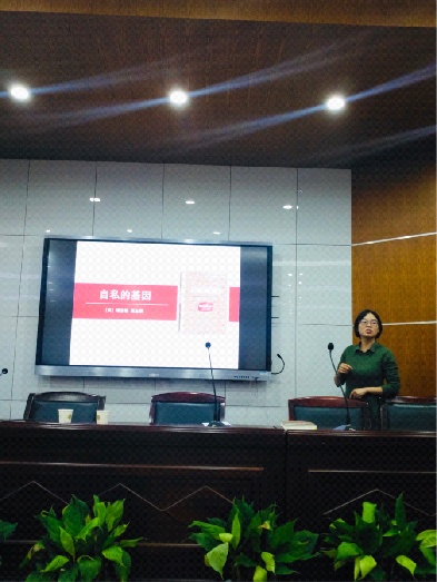 颜汤帆老师给我们带来的是《自私的基因》这本科普读物的分享。她从三个大方面以通俗易懂的趣味性语言给我们阐述了这本书的解释和论证,如遗传学上的自私的定义、相互利他主义、欺骗行为和性差别的自然选择等。把根据自然选择的社会学说的这一重要部分用简明通俗的形式介绍给了我们,带我们走近了以基因为中心的进化观。