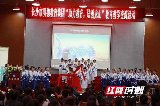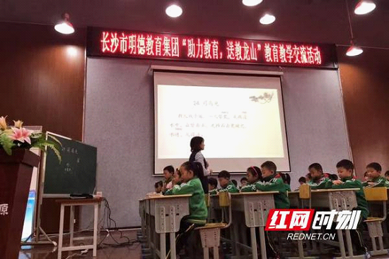 红网时刻11月12日讯(通讯员夏琴)“对口帮扶,扬省会精神;明德担当,树百年品牌……”在龙山思源孩子们铿锵有力的朗读声中,长沙市明德教育集团“助力教育,送教龙山”教学交流活动正式拉开序幕。