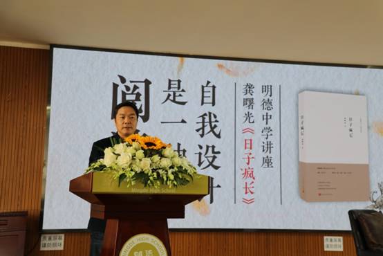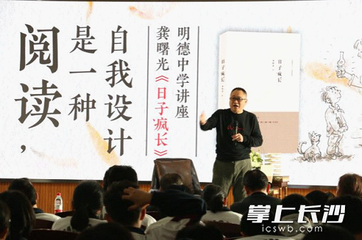 长沙晚报掌上长沙11月28日讯(记者 舒文 通讯员 马臻)谈及阅读,大家并不陌生。然而,当刷抖音、玩手游成为时下“潮流”,在家、在公共场所捧书阅读倒成了一股清流。如何在学生的成长关键期培养阅读习惯,帮助他们“铸思想,扬个性”,明德中学以“明德讲堂”为载体,邀请名家学者进校园开讲。今日上午,作家、文学评论家、出版人、湖南出版投资控股集团有限公司党委书记、董事长,中南出版传媒集团股份有限公司董事长,畅销书《日子疯长》作者龚曙光先生受邀做客“明德讲堂”,与数百名学生分享了一堂充满人生智慧的阅读课。