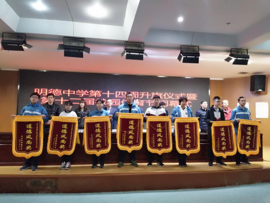 在过去的一个月里, 同学们以朝气蓬勃、顽强拼搏的精神面貌展示了我们明德学子的风采。大会第三项由明德中学党委徐林书记宣读获奖集体及个人名单并由学校领导为本次获奖集体与个人颁奖,在颁奖音乐声中,获奖的个人及班级代表从校领导手中接过奖状,露出由衷的笑容。