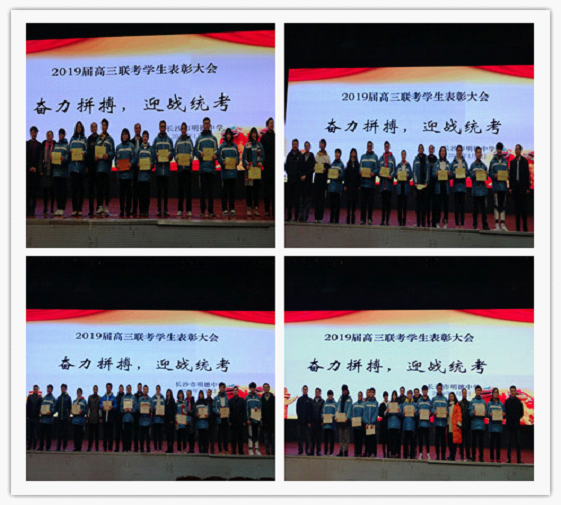 会议首先由教育处蒋灿强主任宣读本次三湘大联考表彰决定,公布了获奖学生名单,并进行了隆重的颁奖仪式。本次颁奖嘉宾由伍卓林副校长、蒋灿强主任、团委刘锦书记、年级组吴永果组长和高三全体班主任组成。
