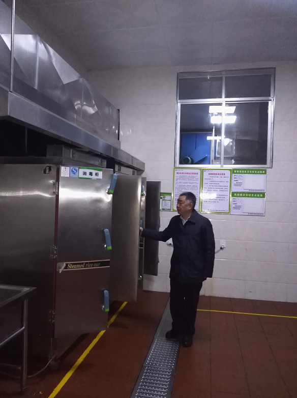 龙迪辉书记在检查食堂卫生工作