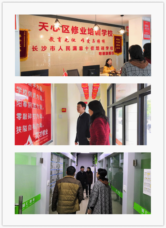 当天上午,纪委书记周喜兰、教育处主任蒋灿强、总务处副主任王俊萍细致检查了学校周边相关培训机构,包括明达培训学校、文渊阁教育、天心区修业培训学校、巨能教育等,未发现我校教师在外违规补课。接下来,学校将一进步认真组织学习相关文件、认真组织自查自纠,杜绝学校教师出现违规补课的现象。