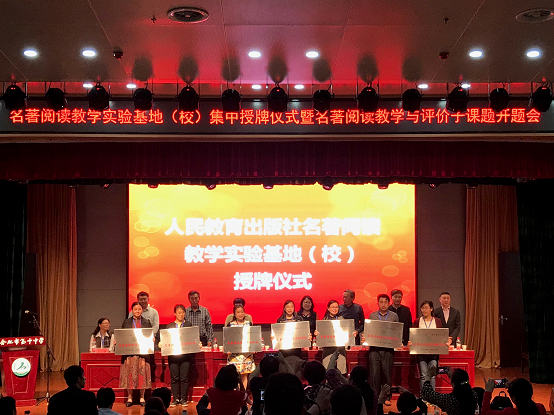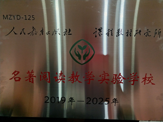 被授予“名著阅读教学实验学?!背坪攀侨嗣窠逃霭嫔缍晕倚R酝诿亩两萄Х矫娴娜峡?。在今后的教学实践中,在蒋雁鸣老师的带领和悉心指导下,我校一定会在“名著阅读”的道路上继续砥砺前行,结出累累硕果。