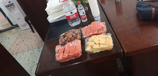 为了这堂公开课,备课组的老师都在忙些啥呢?早上一到办公室,咦,今天的办公室怎么这么多人呢?看见正在角落里拖地的莫逆老师,另一头是正在整理办公桌的兰美艺老师;课间操男老师齐出动,一个个扛着一大摞听课凳子,正好碰到刘军老师和谢卫平老师搬着凳子,凳子足足平了头高;9点多姜华老师骑着电瓶车跑到校外买来了四大盒水果,你们劳动的样子真的很漂亮很帅哦!从领导和老师进教室听课,到之后的评课,高二数学组的所有老师都变成了服务员,大家忙碌的样子感觉就像自家办喜事一样。