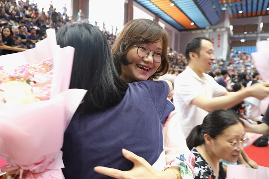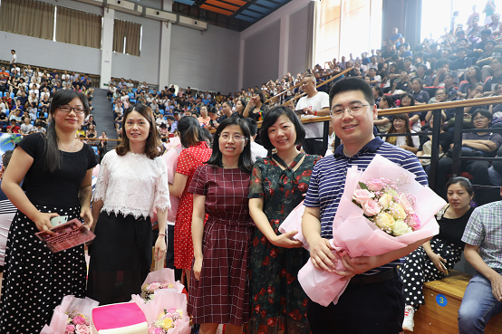 其实,在明德中学像汪老师这般敬业奉献、辛勤耕耘的“劳动楷?!贝笥腥嗽冢巧硖辶π?,言传身教,用十几年如一日的教育热情、点滴行动成为孩子们心中最美的榜样。所以当屏幕上滚动播放高三年级全体老师照片的时候,当老师们列队走过星光大道的时候,当毕业生代表向老师献花时,孩子们尖叫声不断,感动的泪水亦不断。