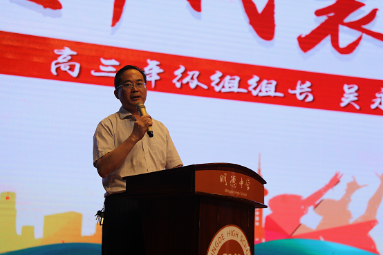 高三年级组长吴永果作为教师代表发言,他以教师的视角细数三年来学生的成长过程与点滴瞬间,也由衷感谢全体老师、家长们的辛勤付出和用心陪伴。