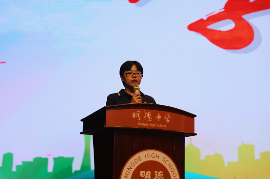 刘校长在演讲中还寄语全体毕业生:明德中学到如今,已有116年历史了?;毓嗣鞯禄曰秃裰氐睦罚颐腔岱⑾?,真正有成就的明德人,都是怀瑾握瑜、温润如玉、切磋琢磨、玉不离身的人,是一直怀揣着美玉般的光明和美好、奋勇前行的人。在大家即将离开明德,奔赴前程的时刻,我希望大家牢牢铭记“明德”的宗旨,随身携带着这一块叫做“明德”的美玉,走向远方,创造辉煌!