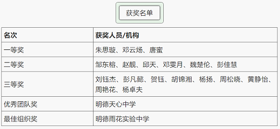 经过3个小时的激烈角逐,来自明德麓谷中学的朱思璇、明德天心中学的邓云炀、明德天心中学的唐蜜分别获得了初一组、初二组、初三组的一等奖。