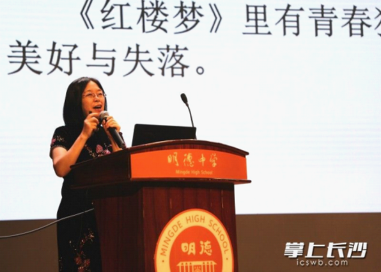 明德中学正高级教师、湖南师范大学硕士研究生导师、蒋雁鸣中学语文名师工作室首席名师蒋雁鸣带来了阅读经典,涵养人生——《红楼梦》与青春阅读微讲座。