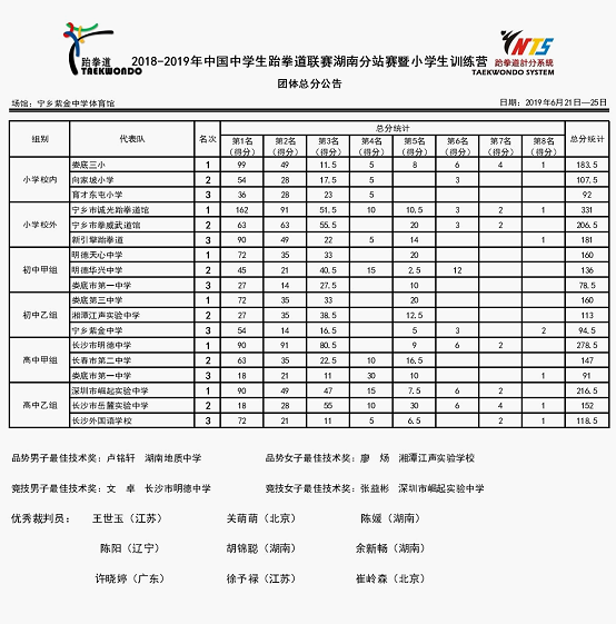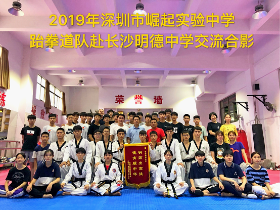 由教育部中国中学生体育协会举办, 2019年中国中学生跆拳道联赛湖南分站赛于6月21-24日在宁乡县紫金中学举行,来自全国各地共计43支队伍466人,经过4天的激烈角逐,我校跆拳道队员共夺得10金8银5铜,以总分278.5分的绝对优势获得高中高水平甲组团体总分第一名的好成绩。感谢学校领导对跆拳道队的大力支持,感谢各位班主任老师对队员的关心呵护。特向全校师生报喜!同时我校也迎来了兄弟学校深圳市崛起实验中学教练携18名跆拳道队员来我校交流,为增强两校间的友好住来,提供了良好的学习交流平台。