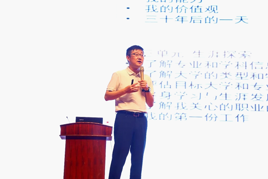 第一环节的培训有幸继续邀请到指导心理学博士、“全生涯”教育联盟创始人、全通继教网生涯教育首席专家李明一先生和北京市海淀区紫竹院学区管理中心教育教学部部长、学科融合课题组政治学科带头人、职业生涯规划课程讲师施韬老师。李博士给全体明德人进行一次理论与实践相结合的专题讲座。首先李博士从理论角度普及了“生涯规划与课程融合”的相关内容,让大家能够及时更新自己的教育教学理念,适应新时代的发展需求。随后施老师现场执教“政治学科与生涯教育”一课,本课非常直观了让大家学习到了如何将生涯规划融入到学科教学当中,真正实现学有所得,学以致用。