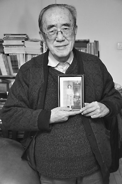 肖纪美手捧妻子照片