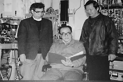 肖纪美(中)与同事探讨问题