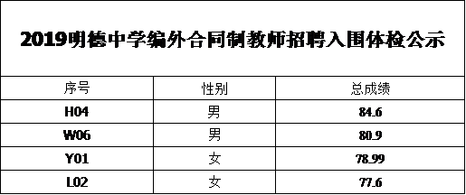 2019明德中学编外合同制教师招聘入围体检公示