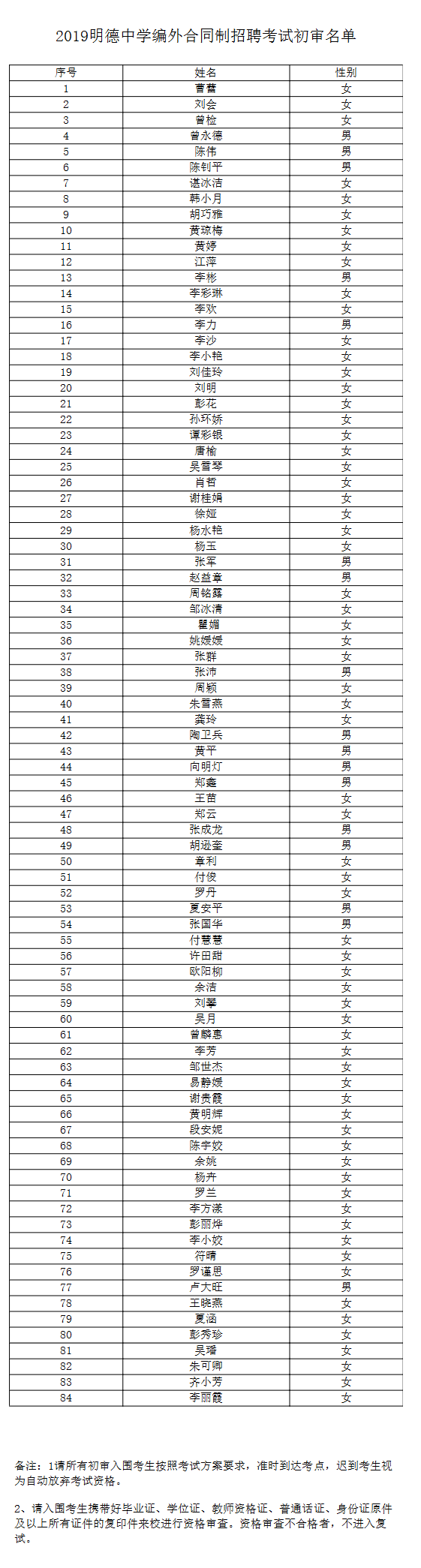 2019明德中学编外合同制招聘考试初审名单