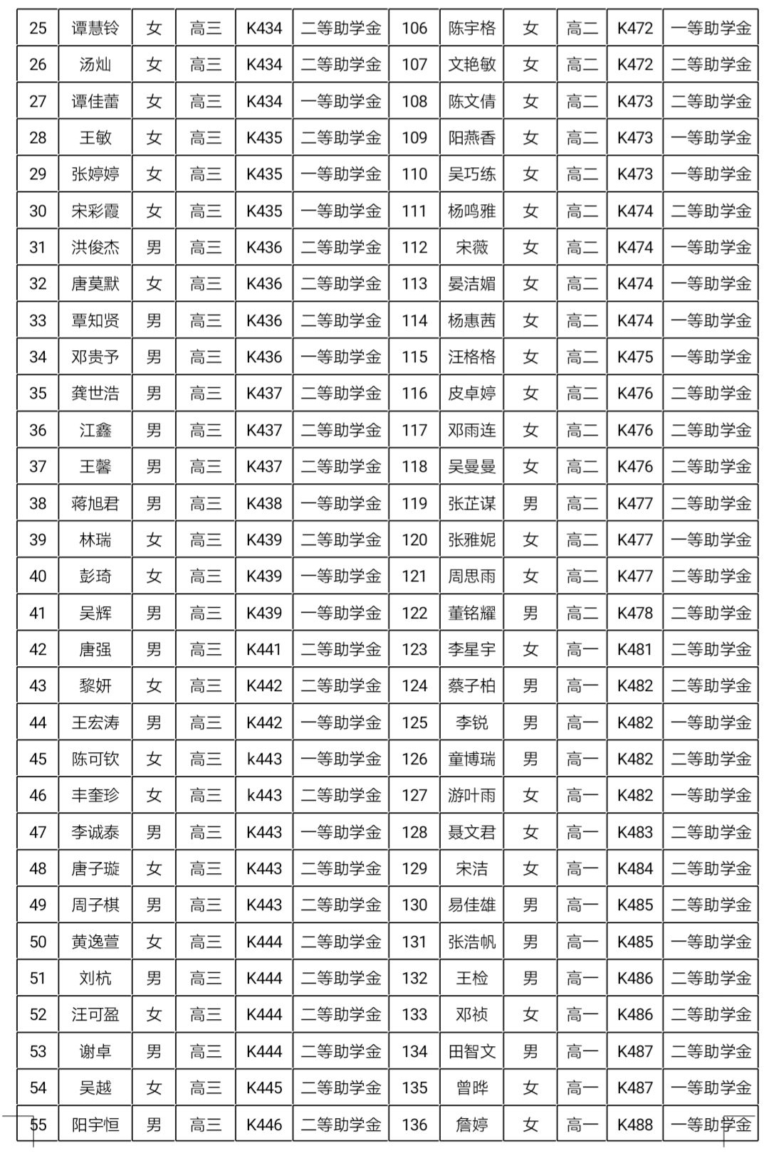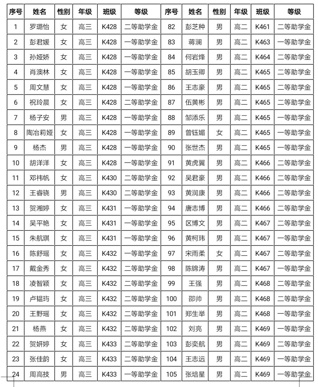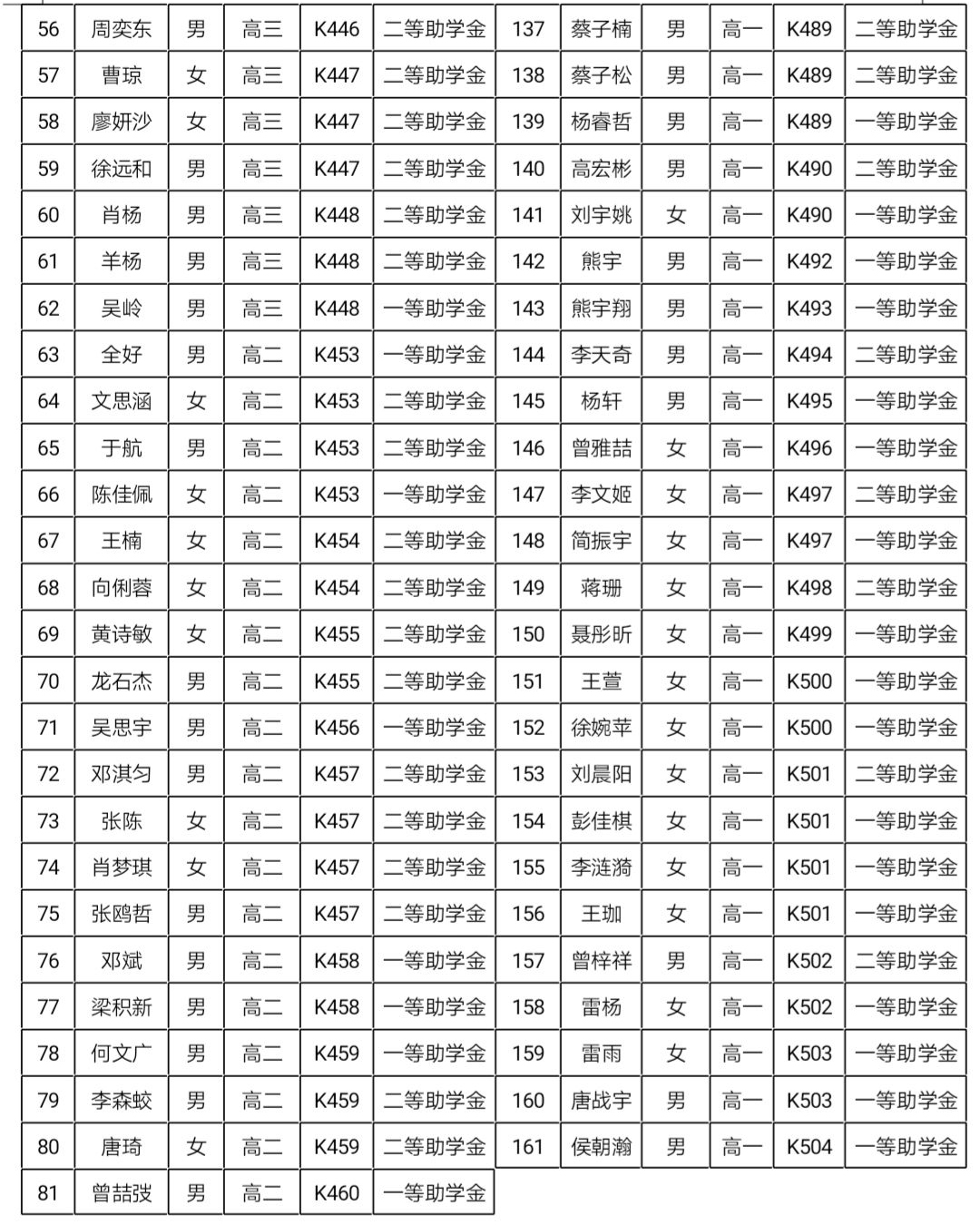 明德中学2019年秋季普通高中国家助学金名单公示