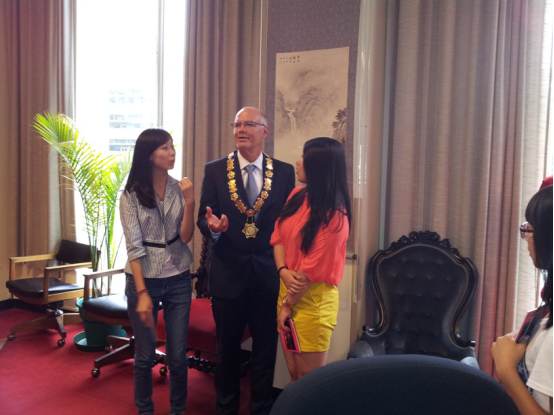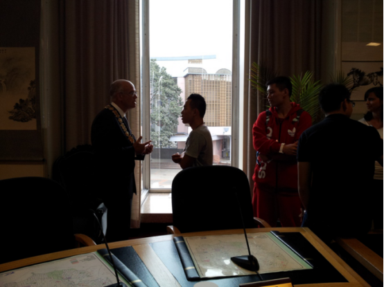 让他同学们感到很兴奋的是,现任市长福廷先生在和同学们交流中,尽然能用一些中文。原来福廷市长有很深的中国情结,他自己有一个小孩,还收养了两个来自中国的孤儿,一位来自安徽合肥,还有一位来自台湾,看得出他对中华文化很感兴趣。