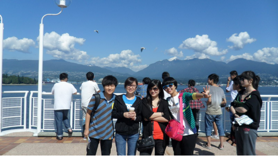 李菀桉同学(左一)和明德中加班学生在加拿大温哥华合影
