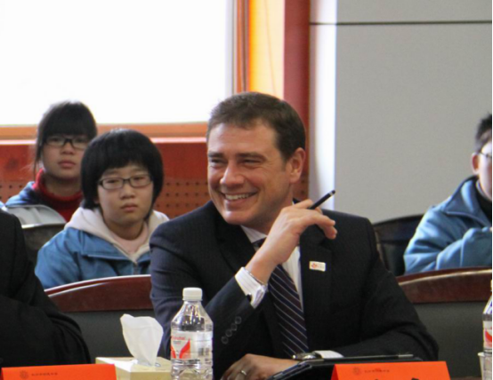 会后,Huot先生与三位刚从加拿大交流学成归来的中加班学生愉快交谈,他很高兴看到首届中加交流生在加拿大取得的成绩??吹浇涣魃且徽耪庞淇斓男α?,Huot先生回想起自己留学生时期的美好时光。