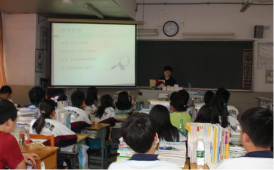 李莞桉同学主要介绍了加拿大大学申请的攻略,分别从前期准备、申请材料、学费、奖学金、义工等方面做了详细介绍,并对现场提问的学弟、学妹进行了详细解答;熊剑同学主要介绍了如何申请加拿大学院,从大学与学院的区别、加国留学的生活等方面做讲解,跟同学们分享了在加国留学的精彩照片,并进行面对面的交流探讨;同时,三位学长、学姐也在学习上鼓励高一、高二的同学们要敢于追逐梦想,激流勇进,并祝福同学们在留学路上收获成功。