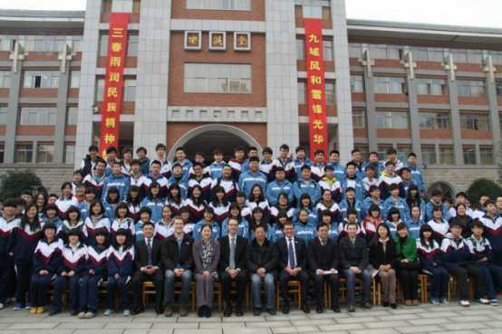 加拿大驻广州总领事艾伟敦先生一行与明德中加班学生合影