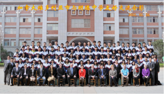 加拿大维多利亚市市长访问团与明德中学国际部师生合影