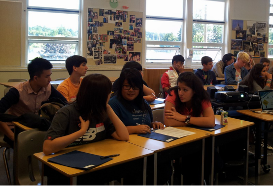 毛思雨同学(前排中间女生)在加拿大课堂上