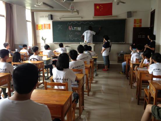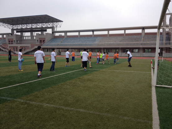上午有外教JC的北美文化课,讲授的是北美体育文化之Frisbee(飞盘)运动,并组织同学们在足球场上进行比赛。加拿大籍外教JC风趣幽默,极具亲和力,同时也是一位运动健将,全程用英语与同学们交流,并在很短的时间内与学生们打成一片,在短短的四十分钟时间内,同学们都喜欢上了这个皮肤黝黑的大家伙和他的户外运动课。