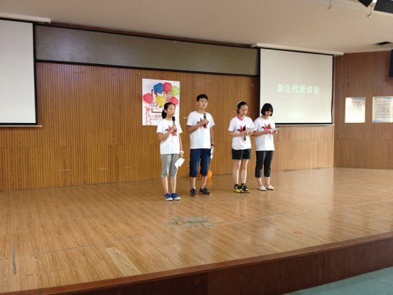 在回顾完夏令营的精彩片段后,我们的新生代表们走上台来,分享在夏令营期间的想法和感受。他们说到:七天的相处,七天的成长,离不开各位老师的谆谆教诲,离不开学长们的悉心帮助,离不开校工们无私帮助,更离不开相互信任,相互激励的同班同学。